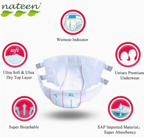 Nateen Adult protective incontinence diapers can keep leaks and accidents at bay, so you're free to move around and keep up an active lifestyle. These high absorbency adult incontinence briefts are designed for security with tabs fit a wider range of body shapes and are easily adjustable to get the best fit. The breathable fabric and waterproof back sheet, allows more airflow for greater comfort and less skin irritation.
