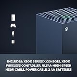 Experience brighter worlds, vivid imagery, and sharper details with 4K gaming and up to 120 FPS that makes everything feel so real it’s unreal. Quick Resume: Seamlessly switch between your favorite games and pick up right where you left off. Backward compatibility: Play four generations of games, including games that are optimized for Xbox Series X|S to look and play better than ever. Lightning-fast load times: Jump into your favorite games like Fortnite and Grand Theft Auto instantly. Play new games on day one like The Outer Worlds 2, Call of Duty: Black Ops 7, and Grounded 2. Choose from hundreds of high-quality games on console, PC, and cloud with Xbox Game Pass Ultimate. Includes: Xbox Series X console, one Xbox Wireless Controller, an ultra-high-speed HDMI cable, power cable, and 2 AA batteries. *See bottom of page for important information.