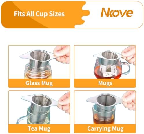 - 🧉<𝐕ersatile and 𝐄asy to 𝐔se>With a perfect 5-inch width and 3-inch height, the NKOVE tea infuser fits most standard cups, mugs, and teapots. The double handle design allows for easy insertion and removal, ensuring it won’t slip into your drink.