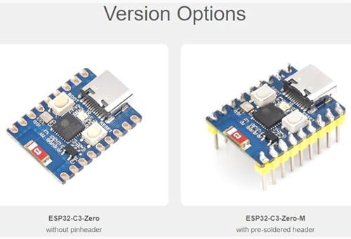 Overview ESP32-C3 Mini Development Board, Based on ESP32-C3FN4 Single-core Processor, up to 160MHz Running Frequency.Supports 2.4GHz Wi-Fi (802.11 b/g/n) and Bluetooth 5 (LE). Castellated module and onboard ceramic antenna, allows soldering direct to carrier boards,suitable for SMD applications. In addition, it has hardware encryption accelerator, RNG, HMAC and digital signature modules to meet the security requirements of the Internet of Things and rich peripheral interfaces. A variety of low-power working states meet the power consumption needs of application scenarios such as the Internet of Things (IoT), mobile devices, wearable electronic devices, and smart homes. Specifications Low-power SoC equipped with RISC-V 32-bit single-core processor, up to 160MHz main frequencySupports 2.4GHz Wi-Fi (802.11 b/g/n) and Bluetooth 5 (LE)400KB of SRAM and 384KB ROM, and 4MB of onboard Flash memoryCastellated module and onboard ceramic antenna, allows soldering direct to carrier boardsSupports flexible clock, module power supply independent setting, and other controls to realize low power consumption in different scenariosIntegrated with USB serial port full-speed controller, 15 × GPIO pins allows flexibly configuring pin functions3 × SPI, 1 × I2C, 2 × UART, 1 × I2S, 2 × ADC, etc. Online Tutorial/Online Document: n9.cl/qm5y7 Package Content ESP32-C3-Zero No Headerx1