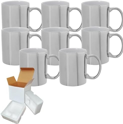 - Gleaming Silver Brilliance: This 8-pack of 11 oz metallic silver sublimation mugs boasts a striking silver finish that adds a touch of elegance and sophistication to your drinkware collection.