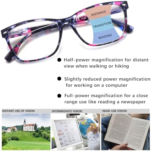 CLASAGA Progressive Multifocus Reading Glasses for Women, Pattern Print Blue Light Block Stylish Ladies Computer Readers