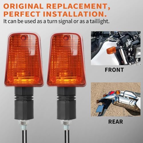- 【Benefits】Made of high-quality materials with good durability and waterproof performance, able to be used in all kinds of harsh weather and road conditions. These short stalk turn signals use an L-bulb light source to provide greater brightness and visibility, making it easier for other vehicles and pedestrians to detect the rider's intention to turn.