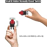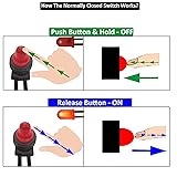 [Normally Closed Switch]: Push button & Hold - OFF, Release button - ON. [Voltage & Current]: 12V/24V @ 6A Mini NC Normally Closed Switch. [Pre-wired Cable]: 4.0 inch pre-wired cable for trouble-free installation. [Double-sided Tape]: Strong Double-Sided Tape for Surface Mount installation. [What's Included]: 1* Normally Closed Switch + 2*Shrink Connectors + 2 Crimp Connectors + 1 extra Double-sided Tape.