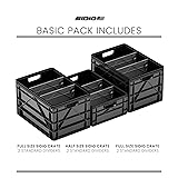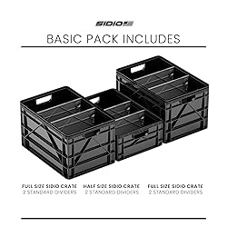 WHAT'S INCLUDED: The SIDIO Basic Pack includes two full sized crates, one half sized crate, and 6 standard divders. Full size exterior measures 18.5”x12.5”x 11” without Lid, while the half size exterior measures 18.5”x1 2.5”x 6.5” without Lid. VERSATILE WITH DIVIDERS. The Sidio Crate is a modular storage unit that adapts to whatever you throw in it. Divide, stack heavy, and stay organized with Sidio. Each crate has over 40 Divider Slots so you can organize according to your needs. Comes with standard, small, and long dividers. RESISTS CRACKS, DENTS AND EXTREME TEMPERATURES. Camping, moving, or long term storage? The SIDIO crates can handle it all. Sturdy and reliable; with ergonomic handles for easy transporting, and an easy-slide polycarbonate lid that is transparent for effortless viewing of contents. HIGH STACKING WEIGHT CAPACITY. The SIDIO Starter Pack Crates are easily stackable with or without their lids. With the unique Durable PP Block Copolymer material, the crates are more hefty and durable, making them more load-bearing than other folding storage boxes. MADE IN THE USA. These functional yet stylish crates are proudly made in the USA.