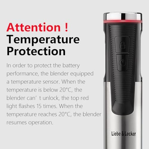 • Safty Lock: Before using our hand blender, please active the blender. Press the unlock button for 1 second until the light turns blue. Blue light means the blender is active. Release the unlock button and press power button to use our immersion blender.