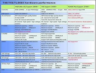 - T48 programmer is the TL866ii plus programmer replacement, it's hardware parameters: (almost the same as TL86II) 16 channel ISP total 56-channel. dedicated IO 56-channel high-speed high-voltage insulation, VCC voltage 1.8-6.5 V, 64 levels adjustable, VPP voltage 9V-25V 64 levels adjustable. Power consumption: 5V <500MA. Static power consumption: 60 mA. Without external power supply interface. Self-test each pin of VPP/VCC/GND/IO Suitable for developers and maintenance personnel, can do small batch production for high capacity chips, support simultaneously working with 4 programmers on each computer. Suppport high-voltage chips, VPP maximum up to 25V, that is what TL866II cannot achieve. Production of high-density SMD technology, a unified user interface, easy to use, fully functional, reliable program running of application software, ultra-small (size is almost the same as TL866II), code runs much faster. Package includes: 1x T48 MiniPRO programmer,1x USB cable,1x SOP8 clip,1x SOP28 socket,1x tssop28 socket,1x download cable,1x SOP8-DIP8 150mil adapter,1x SOP8-DIP8 208 208 mil adapter,1x PLCC44-DIP44 adapter,1x PLCC32-DIP32 adapter,1xSOP8/msop8/tssop8/ssop8/SOP16-DIP16 simple adapter,1xqfp32-100 pcb board adapter,1xwson8 6*5/8*6 pcb board adapter,1xQFN32 0.8 mm pcb board adapter,1x Sop8-28 150-300 mil PCB board adapter,1x PLCC IC extractor,1x 2 pin headers