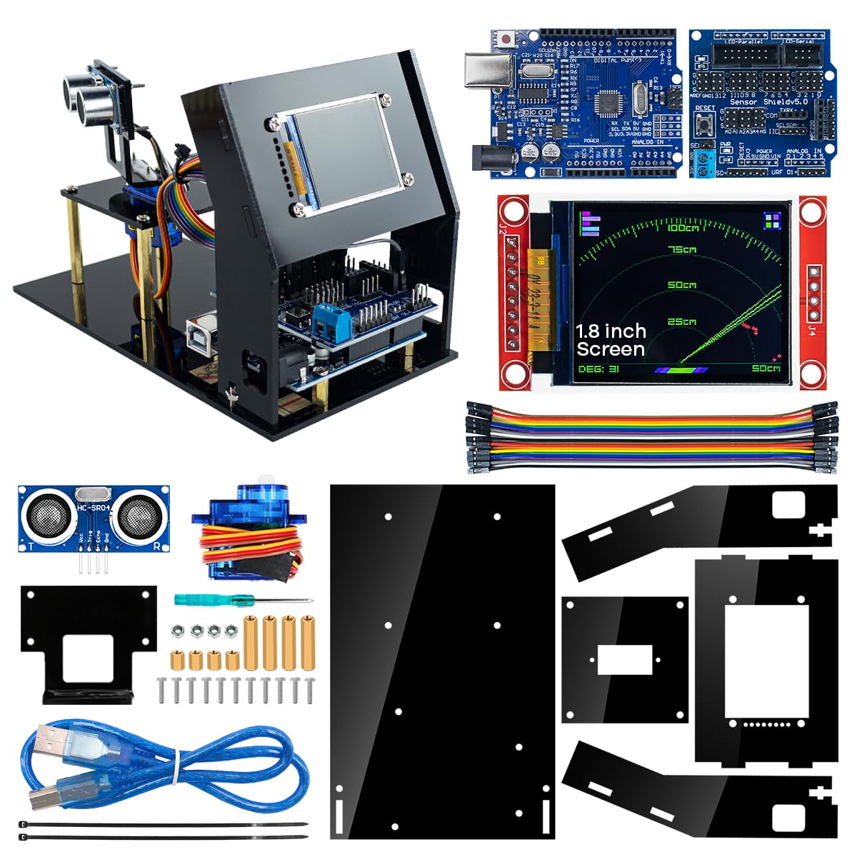 LAFVIN Simulation Ultrasonic Radar Sensor Module DIY Kit 180-Degree Scanning Detector Compatible with Arduino IDE