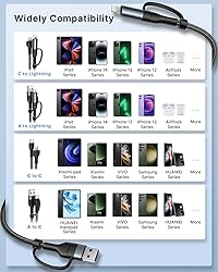 Versatile 4-in-1 Design :This 4 in1 charging Cable is designed to simplify your charging setup. It combines four modes - USB A to C, USB A to Lightning, USB C to Lightning, and USB C to USB C - in one cable.Keep your workspace clean with our efficient Multi USB 4-in-1 Charger Cable Universal Compatibility : USB A/C to lightning cable supports Fast Charge for iPhone 16 15 14/14 Plus/14 Pro/14 Pro Max/13/13 Pro/13 Pro Max/13mini/12/12 Mini/12 Pro/12 Pro Max1/11 Pro/11 Pro Max/ XS Max/ XS/ SE 2020/8/ 8 Plus and iPad. USB A/C to USB C Cable for Samsung Galaxy S23/S22/S21 Ultra/S20/S20 fe/S10/S10e/S10+/S8/S8+/S9/S9+ S8 Plus/A02s /A03s /A10e/ A11/ A12 /A13/ A20 /A21 /A32 /A33/ A42/ A50, Google Pixel 7/7 Pro/7a/6a/6/6 Pro/5/4/4a, LG, Motorola, Xiaomi and other USB C devices 60W USB-C Fast Charging Cable :With a power output of 60W(Max), this USB C to USB C Adapter Cable supports high-speed charging up to 3A, your iPhone can be charged from 0% to 70% in just 30 minutes,faster than other 5V/2A output cables.It also supports data transfer speeds of up to 480Mbps Durable and Flexible Design :This 4 in1 Charging Cable Adapter is made to have a longer lifespan and has passed a gauntlet of bending tests up to 50000 times to ensure it will never break.The premium aluminum alloy port with laser welding technology will not rust or oxidize after long-term use, ensuring a fast and stable connection What You Get :Get 1Pack 4-in-1 universal charging cable 3ft with 18-month war ranty and 24/7 customer service. XUDUO values your shopping experience, our efficient 24 hour customer service aims to provide you with the best shopping experience