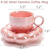 Goaste 2 Pack Ceramic Coffee Mug with Saucer Set, Cute Cloud Mug with Sunflower Coaster, 8oz Creative Latte Tea Cup for Office, Home, Coffee, Tea, Latte, Milk, Pink, Pearl White