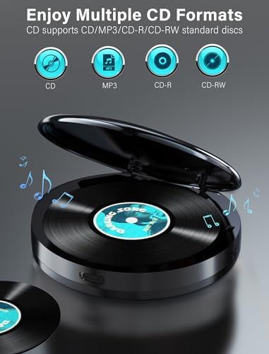 - 🎹【Protección Anti-Salto y Tamaño Compacto】El reproductor de CD Discman tiene protección anti-salto incorporada para una experiencia de audio estable mientras te mueves, con hasta 40 segundos de protección anti-salto para CDs y hasta 90 segundos para MP3s. El tamaño de 5,75*5,75*1,32 pulgadas es adecuado para llevarlo fácilmente en tu mochila, dar un paseo o hacer ejercicio, y reproducir CDs en cualquier momento y lugar. Además, este reproductor de CD portátil para coche tiene protección anti-choque, lo que lo hace estable para reproducir incluso en un coche lleno de baches.