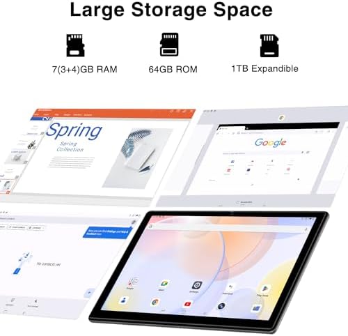 - 64GB ROM & 1TB Expansion : Tablet is equipped with a powerful 10.1 inch display and 7GB RAM, providing smooth and efficient performance for multitasking, gaming, and multimedia usage. Additionally, the tablet allows you to expand the storage up to 1TB, offering abundant space to store your photos, videos, and music.