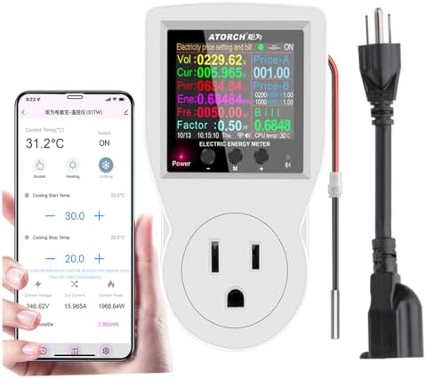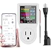 AC WiFi Watt Meter, Plug-in US Socket Power Meter, Electricity bill statistics,temperature control,Backlit Large Color Display, Overload Protection,Voltage AMP Tester, Electrical Energy Monitor Timer