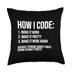 - Unique Programmers Apparel & Home Decor Shop. Funny Programmer Joke How I Code Coding Programming Coder. A must-have for coders and computer programmers. They'll definitely be able to relate to this hilarious text graphic on how to code and make it work. Do you know programmers who also experience this? This is a fantastic piece that they can wear to their workplace as they work on their programming and debugging.