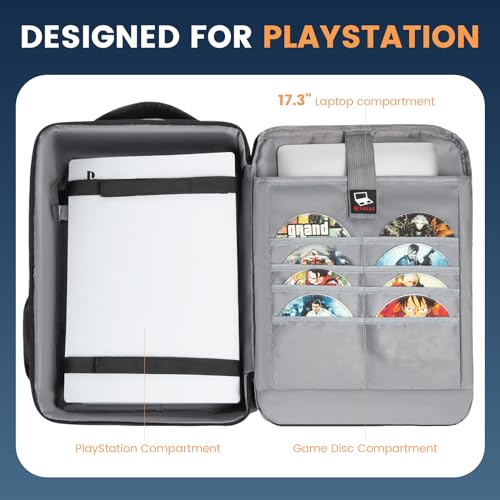 GOTECH Travel Backpack for PS5, Protective Carrying Case Bag for 17.3’’ Laptop, Controllers, Game Discs and More Gaming Accessories, PS5 Carrying Case with Multiple Pockets