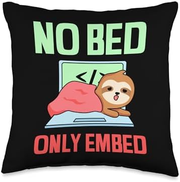 Programming It Software Developing Job Developer No Bed Only Embed Programmer Coder Sayings Coding Throw Pillow, 16x16, Multicolor