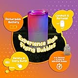 BUBBLE MACHINE: Create a bubble-blowing frenzy at your next party with the Bubble Machine. It's an exciting bubble-blowing toy for kids and adults. Bubbles flow out the top in a never-ending stream for hours of bubble-blowing fun HANDS FREE: The bubble machine is hands free. Just pour in the bubble solution and turn it on. The Bubble Machine has an automatic motor that continuously blows bubbles so you can enjoy the bubbles or do other things LED LIGHTS: The Bubble Machine features LED lights that flash to the beat of the music. A disco ball light rotates in the middle of the bubble stream creating a colorful light show USB RECHARGEABLE: The bubble machine is USB rechargeable. The bubble machine comes with a USB charging cable. Just plug it into any USB port or into a computer or a USB adapter