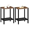 HOOBRO End Tables Set of 2, Small Side Tables with 2-Tier Storage Shelves, Nightstands with Faux Rattan Decoration, for Small Space, Living Room, Bedroom, Rustic Brown and Black BF91BZP201