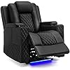 COMHOMA Power Recliner Chair PU Leather Electric Massage Recliner Sofa for Living Room Home Theater Seating with Cup Holders and LED Lighting(Black)