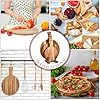 Features: Our pizza serving trays showcase their natural, beautiful wood texture radiating a smooth, rich appearance. An Ideal blend of function and design, these boards are not just for chopping and cutting. These wood trays with handles come with a comfortable, non slip wooden handle that allows for a simple grip. Specifications: Material: acacia woodColor: as pictures shownSmall board: about 12 x 8 inches/ 30 x 20 cmMedium board: about 14 x 10 inches/ 35 x 25 cmLarge board: about 16 x 12 inches/ 40 x 30 cmBase: about 5.91 x 5.51 x 0.98 inches/ 15 x 14 x 2.5 cmQuantity: 3 pieces Package includes: 3 x Wood round charcuterie boards1 x Wooden stand Notes: Manual measurement, please allow slight errors on size. The color may exist a slight difference due to different screen displays. Please pay attention to drying the acacia wood cutting board in a cool and ventilated place after cleaning to avoid exposure to sunlight.