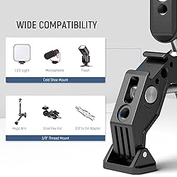 【Magic Arm with Super Clamps】 NEEWER UA036 Magic Arm with Double Super Clamps is a versatile, practical and budget friendly tool that stably mount, flexibly adjust and creatively position your devices on any tubular rods or flat surfaces, perfect for outdoor photography and video recording. Nonslip rubber pads prevent clamps from sliding and protect against scratches 【Versatile Umbrella & Backdrop Clamp】 Securely grip objects of up to 0.6"-2.4"/14-60mm in diameter, the two phone and camera super clamps mount (one with V shaped grooves and pivoting tips) are perfect for flat surfaces like desks, chairs, even clip on a pole like selfie sticks, tripods, light/mic stands, crossbars, bike handle bars, bicycle handlebars, umbrellas, compatible with DJI Ronin-M Ronin MX compatible with Freefly Movi 25mm and 30mm gimbal stabilizer rods 【Flexible Angle Positioning】 Connected by two 360° rotatable ball heads, this magic arm can be easily adjusted to any desired angle, and secure by the screw knob. Note: The magic arm and super clamps are attached and cannot be used separately 【Various Mounting Points】 1/4" threads, ARRI locating holes, 2 cold shoe mounts for photography & videography accessories like action cameras, phones, webcams, field monitors, LED video lights, microphones. Motorcycle/bike clamp mount for attachments compatible with iPhone 15 Pro Max 14 13 compatible with Samsung Galaxy compatible with GoPro Hero 12 go pro 11 10 9 8 Black compatible with insta360 x3 ace pro compatible with DJI compatible with mevo start. Phone holder and adapter not included 【Heavy Duty Metal Construction】Aluminum alloy and stainless steel hybrid construction possessed by die casting makes this adjustable clamp and arm robust, resistant to scratches, and keeps this photography gear lightweight at 11.3oz/320g, and supports up to 7.7lb/3.5kg with ease. Compatible with smallrig magic arms compatible with manfrotto magic arms via the 1/4" and 3/8" threaded holes