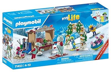 Winter Sports Fun: This PLAYMOBIL Ski World playset transports all winter sports enthusiasts into the exciting world of skiing. Whether it's skiing, snowboarding, or even sledding, there's something for everyone to enjoy here. Added fun at an exceptional value with PLAYMOBIL Promo Packs Toy for children ages 4+: Fits perfectly in children's hands due to age-appropriate size pieces, easy to hold thanks to its rounded edges Everyday play: assembly instructions, high-quality and durable design, easily clean by placing pieces under running water with no harsh chemicals This detailed PLAYMOBIL set includes 6 PLAYMOBIL figures, skis, sleds, a bobsled, and a snowboard, as well as a snack booth for refuelling and other fantastic extras.