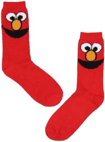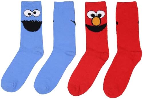 Bioworld Sesame Street Socks Cookie Monster And Elmo Character Adult Fuzzy Plush Crew Socks 2 Pack For Women Men