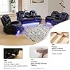 Multifunction Power Air Leather Recliner Sofa Set with LED Lights, Living Room Furniture, Reclining Sofa, loveseat, Chair with USB Port/Storage Console/Cup Holders (Black, 3 Pieces)