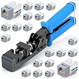 Compatibility - Specifically designed for use ONLY with Everest Media 90-Degree Angle Cat6, 6a and 5e rj45 keystone jacks. Additional Jacks are Available - (B08P1YF41X) Swift, One Motion Operation - You only need one hand to use this convenient cat6 punch down tool! Unlike standard keystone jack punch down tool, our easyJACK Keystone Termination tool, lets you cut 8 wires in one smooth and fluid movement Fully Customizable - Our keystone jack tool easyJACK features an adjustable seating and cut depth die head. It’s easily operable with the handy adjustment wheel and allows for absolute control. Ergonomic Grip For Easy Handling - The grip of our keystone punchdown tool is optimally sized and angled to provide you with great leverage and better hold. It also minimizes strain on your hands because it requires less effort. A Complete Network Tool Kit - Our keystone punch down tool comes with 20 Cat6 keystones, each is made with high-grade hard plastic that can stand strong against impact.