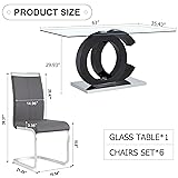 Ebullient Glass Dining Table Set for 6 ,7 Piece Dining Table Set,Tempered Glass Table Top,Modern Dining Room Table with 6 PU Leather Ergonomic Dining Chairs