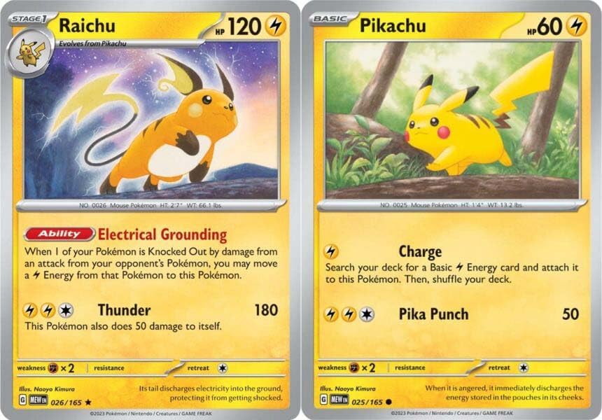 Raichu 026/165 - Pikachu- Pokemon 151 - Evolution Holo Rare 2 Card Lot