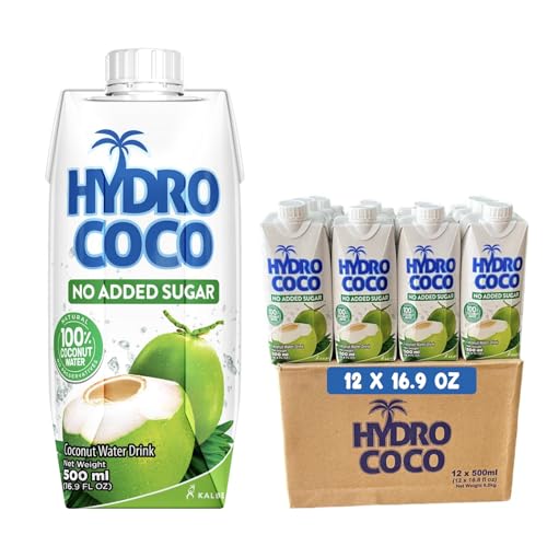 HYDRO COCO, 100% Coconut Water, NO ADDED SUGAR | NO Preservative | Fat free | Natural Electrolytes | Rich in Minerals | 16.9 Oz (Pack of 12)