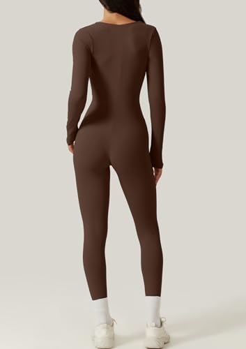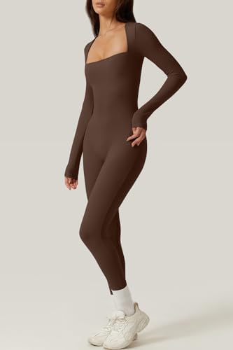 QINSEN Womens Sexy Square Neck Long Sleeve Full Length Leggings Bodycon Stretch Jumpsuit