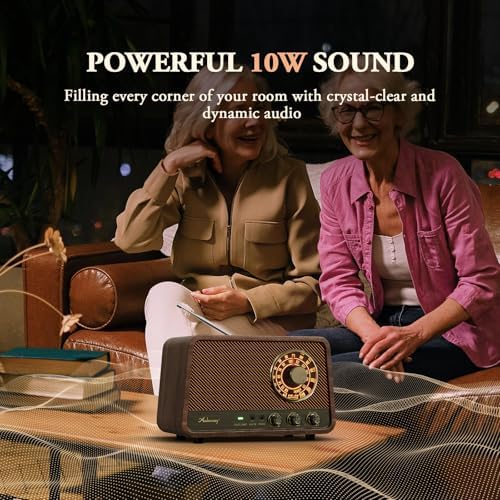 - 【AM FM Radio with Excellent Reception】 Covers FM (87-108 MHz) AM(520-1710KHz). Configured with a long telescopic antenna and a DSP chip, this vintage radio bluetooth speaker have more excellent ability to pick up more stations, whether you live in the city or countryside. You’ll get a lot of fun and useful information from talk shows, current affairs, weather broadcasts, ball games, etc.
