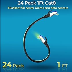【40G Applications】Cat8 internet cable is up to 4 times faster than cat6a patch cables. Ethernet cable 1 ft support 40Gbps transfer speeds and up to 2000MHz bandwidth. Cat8 1ft ethernet cable is the ideal future proof and high performance solution for data, voice and audio/video signals with no lag. Backward compatible with Cat 7, Cat 6a, Cat 6 and Cat 5e cables. 【Extremly Slim】Slim Cat8 short ethernet cable 1ft is half thinner than the regular Cat8 cable, making it the perfect solution for high density server rooms and data centers (switch to switch, switch to router, switch to server, switch to patch panel). It is also light, flexible and can be easily routed in small place with slim cat8 network cables.( unlike typical Cat8 cables that is difficult to run due to thick insulation). 【Dual Shielding】Cat 8 patch cable is made of double shielding F/FTP (overall foil and Individually foil shielding pairs), which protects from EMI/RFI line noise to avoid data loss or hardware damage and help equipment perform better. Cat 8 cables is especially suitable for high line noise environments. 【Fluke Test Pass】Cat8 ethernet cable is made of pure copper 30awg and pass Fluke DSX-8000 for project standard. Use patch cable cat 8 to upgrade network speed with confirdence for office network, residential network and home network project. Ethernet patch cables comply with ANSI/TIA 568.2-D standards. 【Upgrade and Clean Up Rack】Good size 1ft patch cable for clean wire management install. Short ethernet cable make your setup so much easier and cleaner with all same length and color. Cable patch cords is more reliable and secure than Cat6 cable network. Great for Tight Racks with very little space between the equipment. Meanwhile, CAT 8 rated cable are future forward compatible for future possible upgrade to 40G Speed.