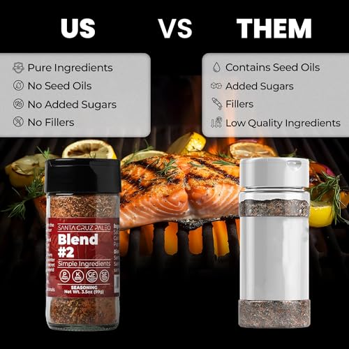 - PALEO SEASONING BLEND: We wanted a simple seasoning packaged in glass with no weird ingredients! Santa Cruz Paleo’s spice blends are 100% keto, paleo, gluten free, and made with no sugar, no seed oils, and no fillers.