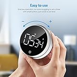 Large Screen and Energy Saving: This Productivity Timer features a 3" LED digital mirror display that is easy to see at a glance. The constant light mode always shows the current timing status and lets you see the time remaining. If you select ECO mode, the screen will dim after 5 seconds, but will still be visible at close range. If there is no operation when the timer is not working, the display brightness will dim and then go off after a few seconds. You don't have to worry about it consuming power in sleep mode, which can extend battery life 3 Level Volume Alerts: This Work Timer allows you to select different volume reminders to suit different environments. Maximum (85-100 decibels) volume is for important reminders, so you won't miss a loud reminder even if you're in another room. Medium volume (65-80 decibels) is suitable for reading and will not disturb your thoughts. Silent mode (0dB) is suitable for study rooms or libraries, and will flash to remind you when the time is up without disturbing others Multi-scene Application: A new generation of digital timer for students and the whole family, whether it's a kitchen cooking timer or work and study as well as sports and fitness/yoga, games, beauty, etc., it helps you to accurately time and effectively manage time, helping children to develop time awareness balancing entertainment and learning One Button Control Easy to Operate: Compared with traditional digital timer, smart productivity timer adopts precision electronic timing device, no need to press repeatedly, just turn the outer ring to adjust the time quickly and easily, one button to start/stop the time countdown count. (Timing range 00:00 to 99:55 minutes) Easy Storage and Storage: This Smart Timer has strong magnetic adsorption and non-slip pads on the back, which can be firmly stuck to the metal countertop to avoid falling off when cooking; there is also a foldable stand on the back for easy placement and viewing