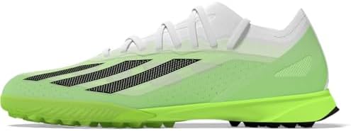 Dominate the pitch with the adidas x Crazyfast.1 Adult Turf Soccer Shoes. Designed for soccer enthusiasts, these sneakers offer a perfect blend of style and performance. The semi-translucent Aeropacity Speedskin upper provides a sleek look and targeted reinforcements where needed. With a low-profile Lightstrike midsole and rubber outsole, these shoes offer precise control and traction on artificial turf. Step up your game while making a positive impact with at least 50% recycled content in the upper. Get your pair now at RevUpSports.com!