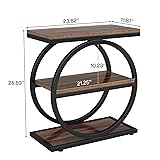 - Introducing our versatile and stylish 3-tier end table - the ultimate storage solution for any home! With ample storage space, you can easily store and organize your books, lamps, potted plants, and other home essentials in a sleek and modern way. Our end tables are designed with wide arrangements, making them suitable for a variety of uses. Whether you need an end table close to your couch in the living room, a nightstand or bedside table in your bedroom, or even a functional addition to your outdoor activities, our side tables have got you covered. Crafted with an industrial appearance, our small side end table is made from high-quality E1 MDF and thickened metal, featuring a rectangular wooden board on top and round-shaped metal frames. The unique contrast of rectangular and round elements creates a special and eye-catching look that will complement any decor style. Assembly is a breeze with our easy-to-follow instructions and number-labeled accessories.