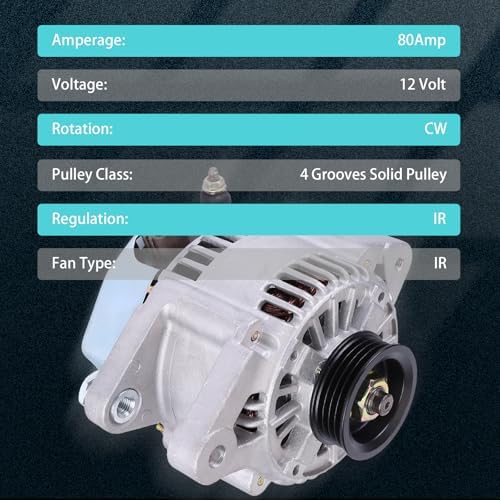 - 🐚Specifications: 80 Amp/12 Volt, CW, Pulley: 4 Grooves, Pulley Type: Solid, Fan Location: Internal, Regulator Location:Internal, Pulley OD: 2.441in / 62mm, this alternator is made of quality metal material, features high impact resistance and better durability