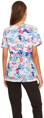 COCO BRANDS Blue's Clues Women's All Over Print, V-Neck Scrub Top with Pockets - Comfortable Work Uniform