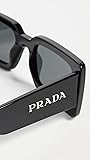 Acetate frame, Silver-tone logo lettering at arms Height: 1.75in / 4.3cm, Lens Width: 52mm, Width: 5.75in / 14.5cm Hardshell case included Non-polarized lenses Rectangular frame
