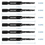 6-Piece 8-32NC Combination Drill Tap Countersink Bit Set SAE, Made of High-Speed Steel with Anti-Rust Blackened Coating, Ideal for Soft Metal, Wood & Plastic, 8-32NC Thread Size, 1/4” Hex Shank