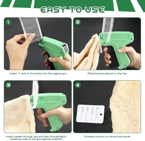 - Easy to Use: reading the instructions and looking at the process pictures ahead of time, you can easily attach a barbs fastener and press the gun to connect the labels with clothes. if the clothing tag machine is stuck, just remove the needle and take out the stuck barbs fastener, do not continue to press the handle forcefully, otherwise it may cause damage to the machine