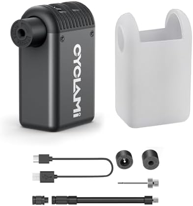 - 【Pocket Size & Portable】: CYCLAMI bike electric pump weighs only 110 grams and is only 70*41*28mm; This electric mini tire inflator is beautifully and portably designed; With cordless design, get rid of the messy cords. Maximize the convergence of storage space and maximize your leisure time; Suitable for road and mountain bike