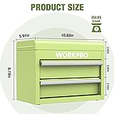 WORKPRO Mini Metal Tool Box with 2 Drawers and Top Storage, Small Tool Chest with PVC Liners and PP Feet Pads, Cold Rolled Steel Toolbox with Magnetic Tab