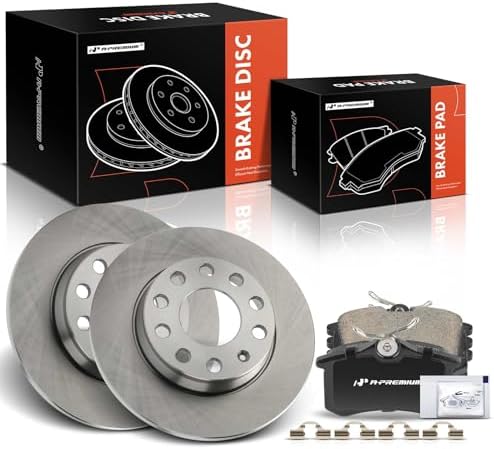 A-Premium 10.03 inch (255mm) Rear Solid Disc Brake Rotors + Ceramic Pads Kit Compatible with Select Audi Models - A4 2002-2005, A4 Quattro 2002-2005, 6-PC Set