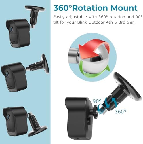 - Blink Outdoor Camera Mounts:Provide 360°rotating and 90° tilt viewing angle without blind spot left, can be adjusted to any angle you want. With screw-fixing base ,stable and durable and make your Blink camera system more stable both on wall and ceiling, ensure your household safety in an all-round way.Not Compatible with Blink XT/XT2/Blink Mini.