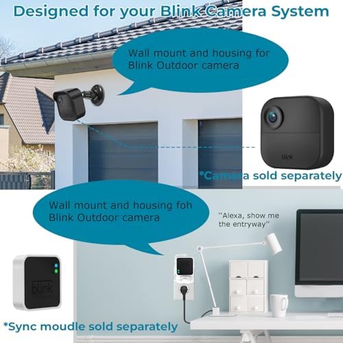 - Package Contains:Blink Outdoor camera mounts x 5 Pack, outlet wall mount for Blink sync module 2 x 1 Pack, screws accessories x 1 set, plug and Blink Camera are NOT included.