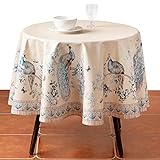 Maison d' Hermine Premium Table Cloth Round Table 100% Combed Cotton 70" Diameter Inches Tablecloth Reusable Decorative for Dining Room, Home, Party, Festive & Wedding - Peacock Utopia - Sandy Beach